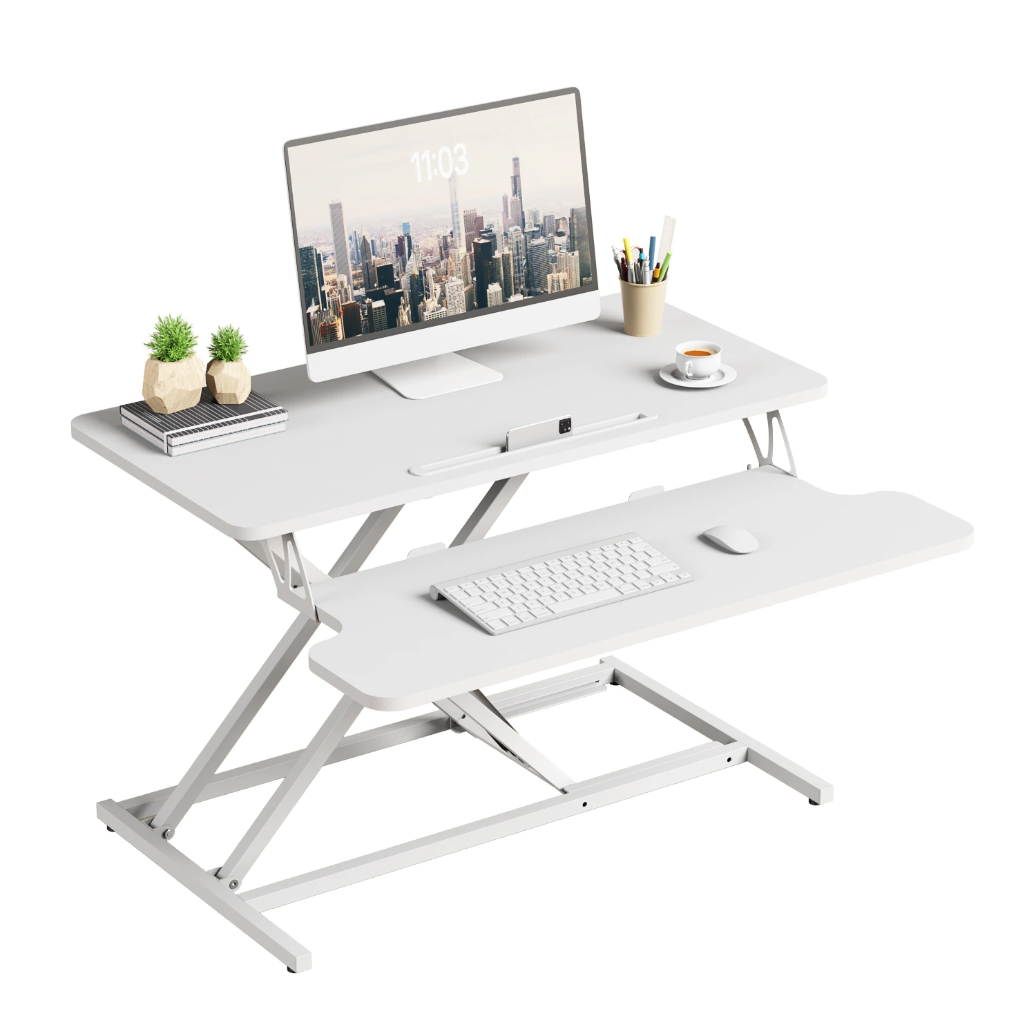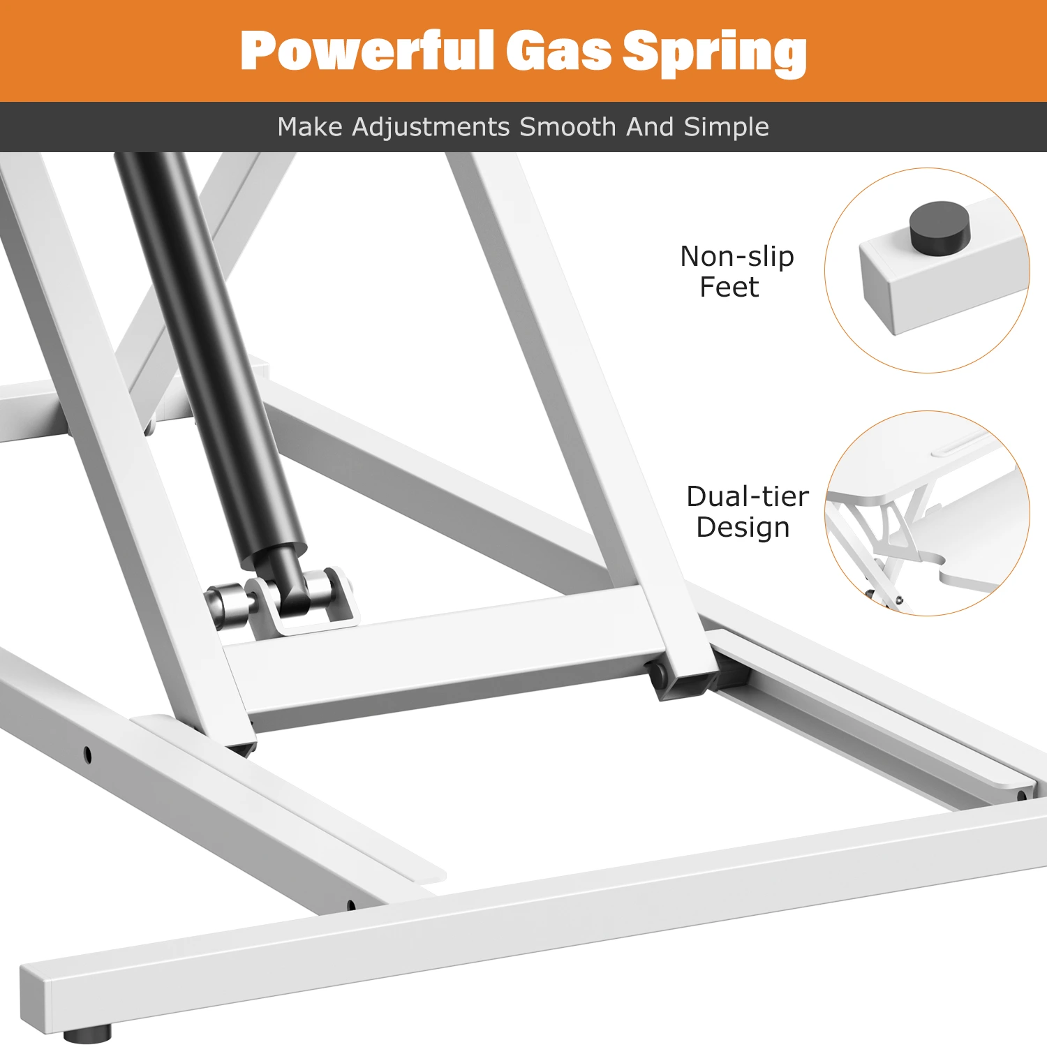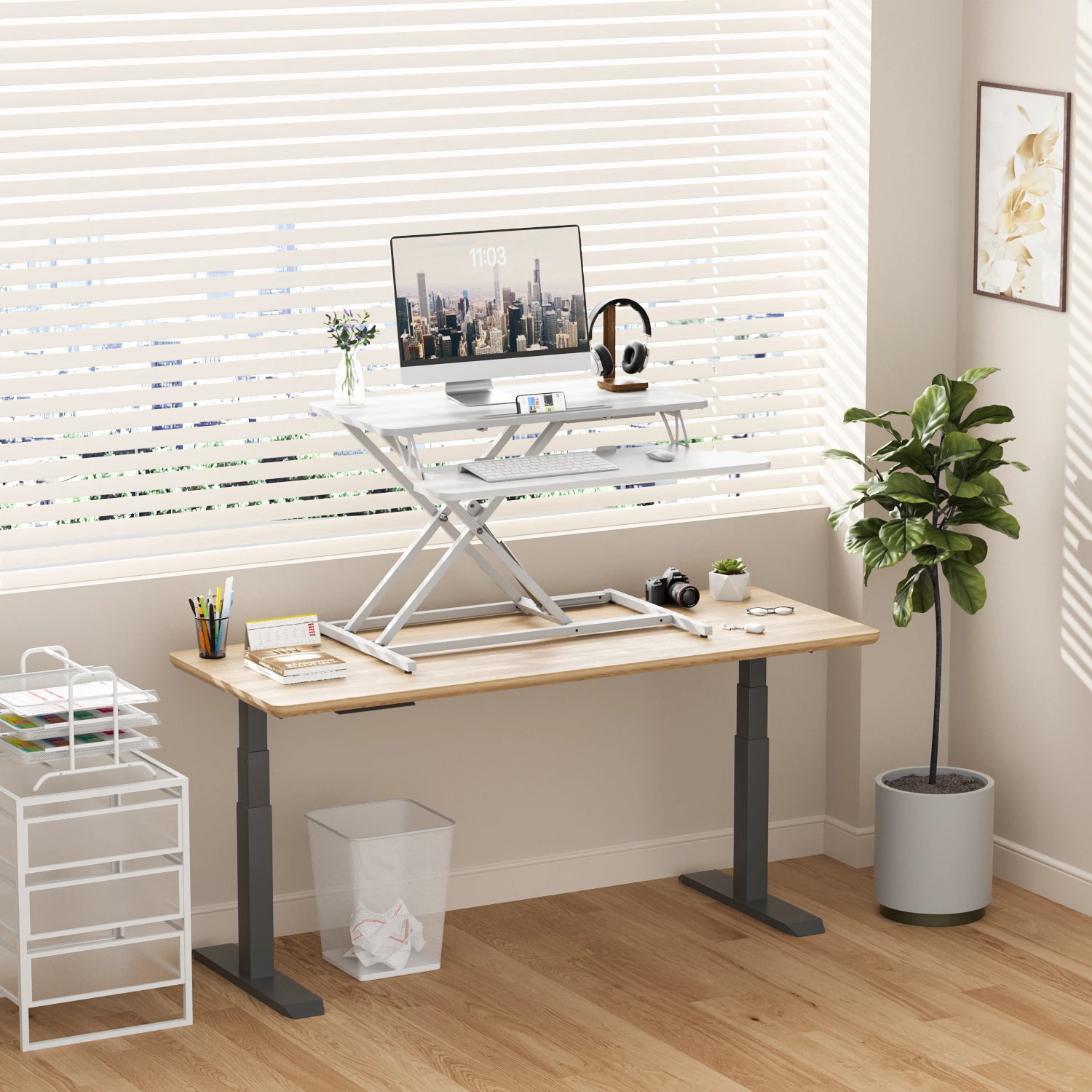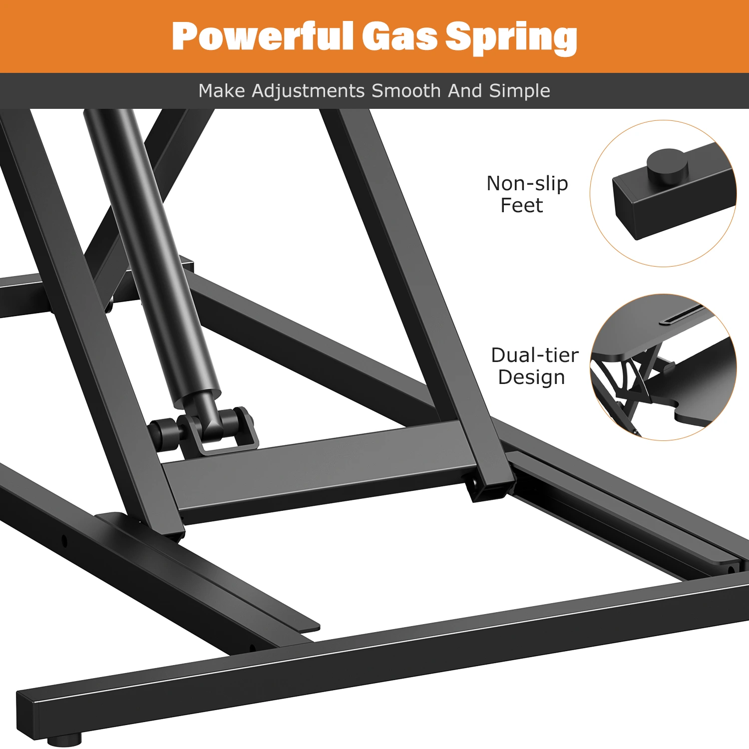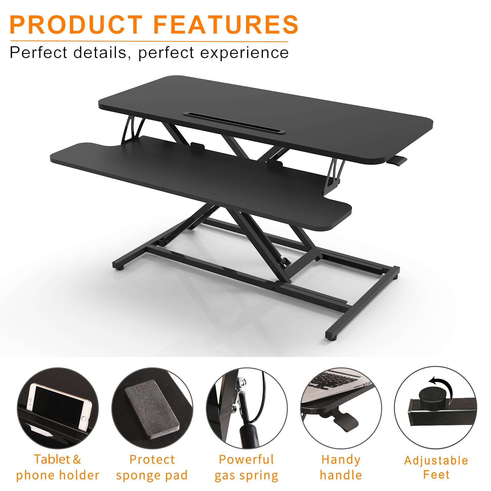 This desk converter is ingeniously crafted to provide you with more space and enhance your work efficiency. The upper tier, boasting a solid 15kg (33lbs) capacity, spans 80 x 40cm (32″ x 16″), offering ample room for single or dual monitor setups, or a laptop, adapting to various work preferences. The lower tier, with a 2kg (4.4lbs) capacity and dimensions of 80 x 30cm (32″ x 12″), comfortably fits a standard keyboard, mouse, and other office necessities like calculators or paperwork. This smart, tiered arrangement not only tidies up your workspace but also ensures all your tools are conveniently at hand, boosting productivity and comfort.”